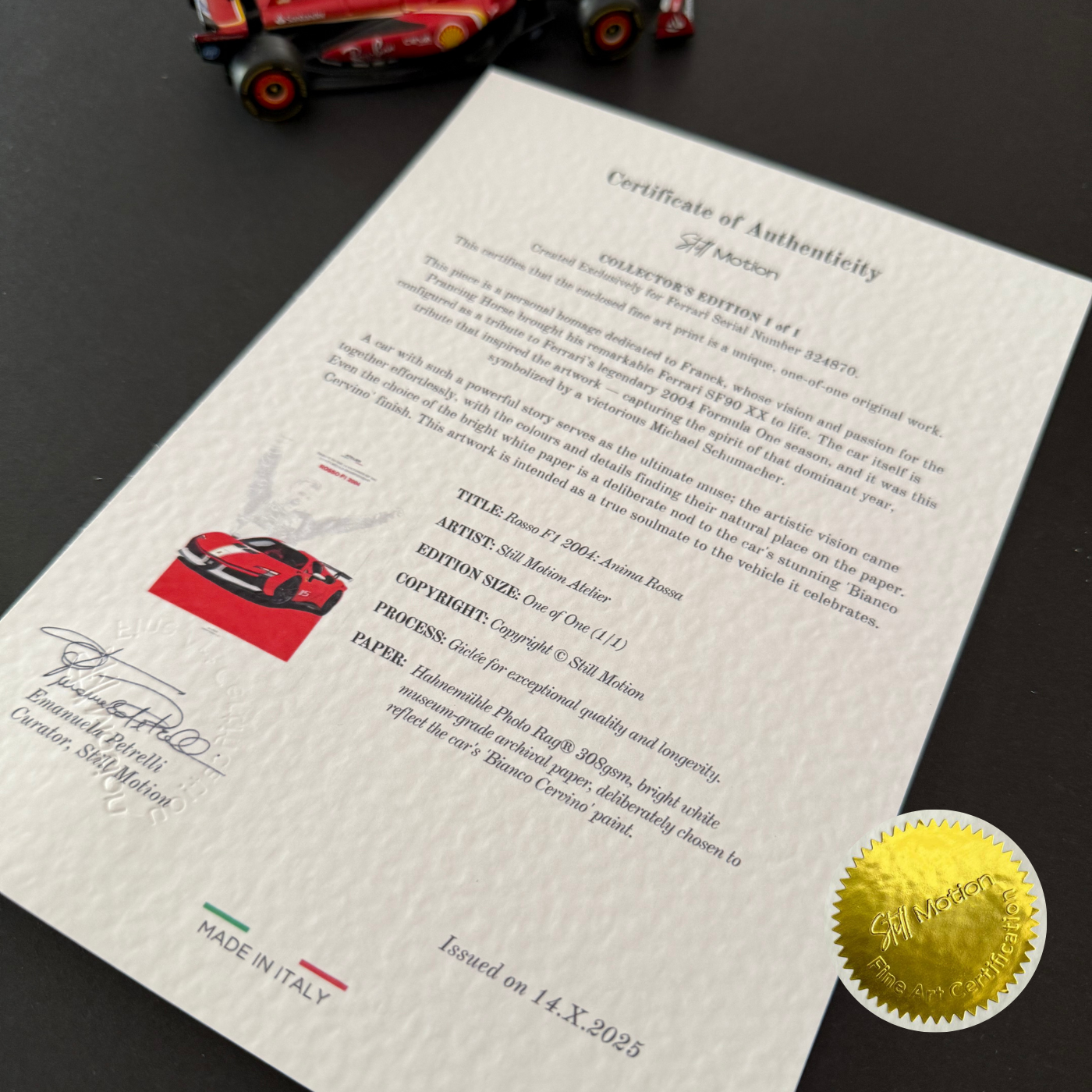 Every sale is recorded in the Still Motion Registry. You receive a signed Certificate of Authenticity matching your edition number.